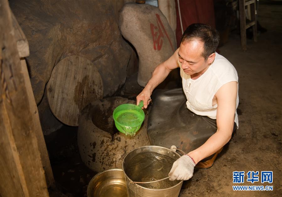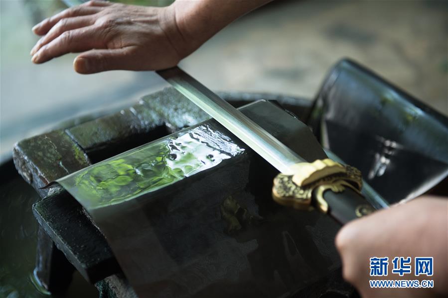 5月21日,鄭國榮在“古越劍鋪”打井水準備為寶劍淬火。他說淬火用的水很重要,正是看中了這口井他才把工作室設在這里。 新華社記者 翁忻旸 攝