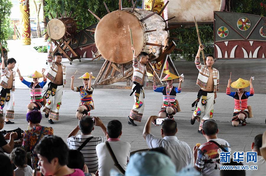 游客在觀賞基諾族大鼓舞表演(6月1日攝)。 在云南省西雙版納傣族自治州景洪市基諾山基諾族鄉(xiāng)的基諾族村寨,每天的基諾大鼓舞表演吸引了眾多游客前來觀賞體驗,帶動了基諾族群眾就業(yè)和增收?;Z族大鼓舞蘊涵豐富的歷史文化內(nèi)涵,已被列入國家級非物質(zhì)文化遺產(chǎn)保護(hù)名錄。 新華社記者 楊宗友 攝