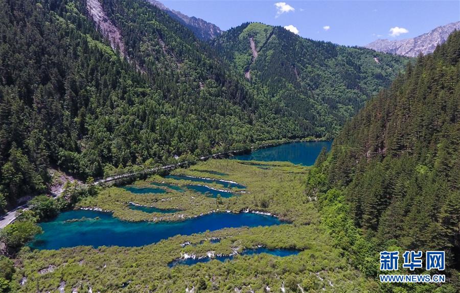 這是九寨溝景區(qū)內一景(6月5日無人機拍攝)。新華社記者薛玉斌攝