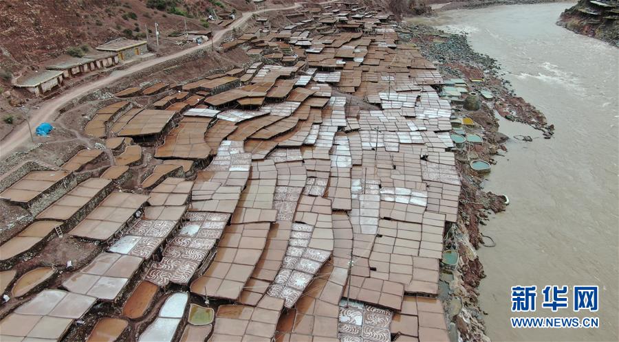 西藏芒康縣納西民族鄉(xiāng)加達村村民在鹽田曬鹽(6月4日攝)。新華社記者晉美多吉攝