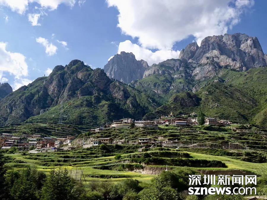 正北是璀璨生輝、巍峨恢宏、雄偉壯觀的迭山主脊光蓋山石峰,另外三面皆是秀峰環(huán)拱,蒼松翠柏郁郁蔥蔥,猶如高峻雄渾、堅(jiān)不可推的城墻,把扎尕那四村一寺圍在城中,其中東哇村和桑拉寺院正巧座落于石城中央。李仁奇攝
