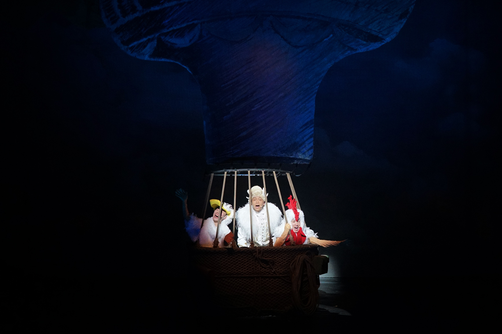 另一方面,《毛毛帶你飛》的音樂也并不低齡化,小朋友對旋律更感興趣,而成人則能收獲欣賞音樂劇的快樂。詞曲的創(chuàng)作者李猛認為這部音樂劇最大的特色在于平衡:“小朋友和成年人都可以欣賞,這是第一層平衡。其次,這部音樂劇里的所有故事都是圍繞飛行展開的。不同時代與地域的人對于飛行有著截然不同的理解,如何用音樂展示這種差異性的同時保持母題的統(tǒng)一,這是第二層平衡。最后,故事的敘述與音樂表達相輔相成,這是第三層平衡。這三種平衡彼此依托,塑造出合家歡原創(chuàng)音樂劇的獨特魅力。”