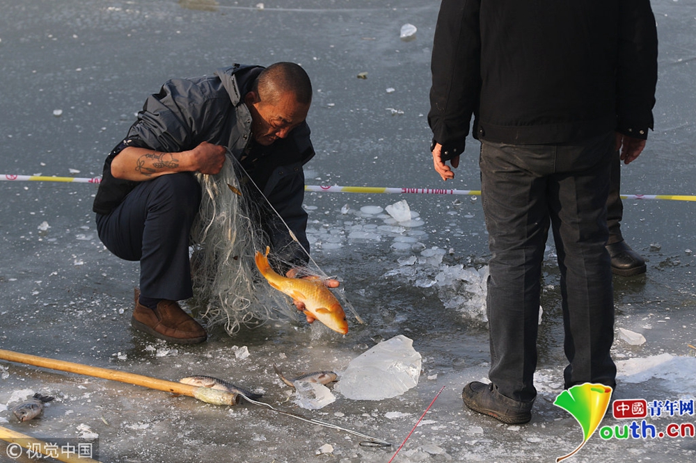 安徽阜陽:八里河冬捕魚“頭魚”拍出88萬元