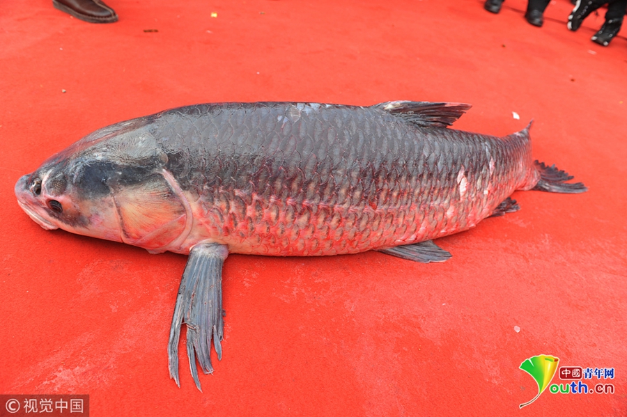 1月6日,安徽省阜陽市潁上縣八里河漁場正式開始進行冬季大捕魚,捕獲的一條重達78斤的“頭魚”拍出88萬元,現(xiàn)場吸引眾多客商和廣大群眾觀看。據(jù)悉,此次所得拍賣款全部用于當?shù)孛撠毠浴?圖片來源:視覺中國
