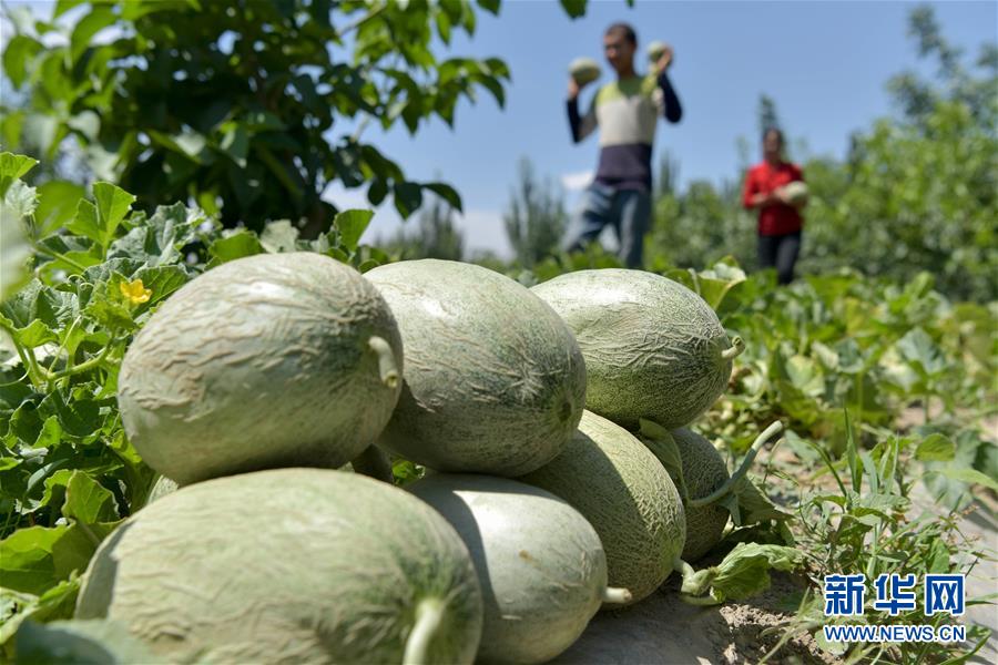 6月23日,新疆喀什地區(qū)巴楚縣的瓜農在采摘留香瓜。