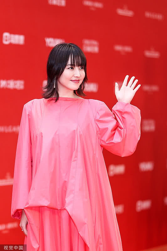 圖為2019年6月23日,第22屆上海電影節(jié)閉幕紅毯上的郝蕾。
