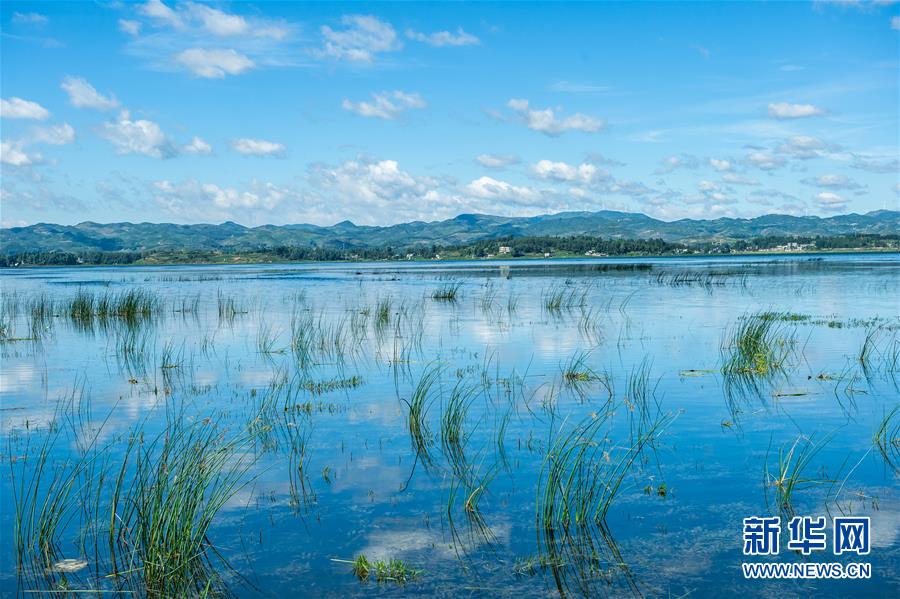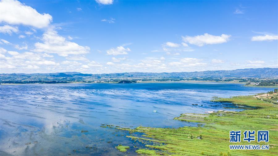 6月20日無人機(jī)拍攝的草海國家級自然保護(hù)區(qū)萬噸生活污水處理廠。 新華社記者 陶亮 攝