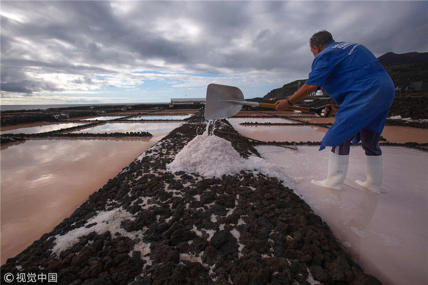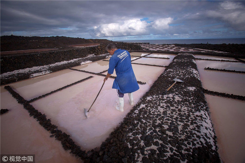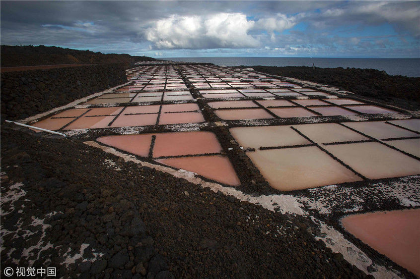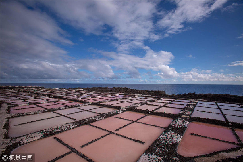 當(dāng)?shù)貢r間2018年11月26日,西班牙拉斯帕馬斯島,實拍薩利納斯豐卡連特鹽田。DESIREE MARTIN /視覺中國