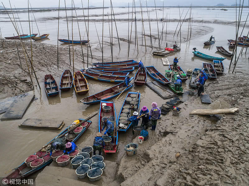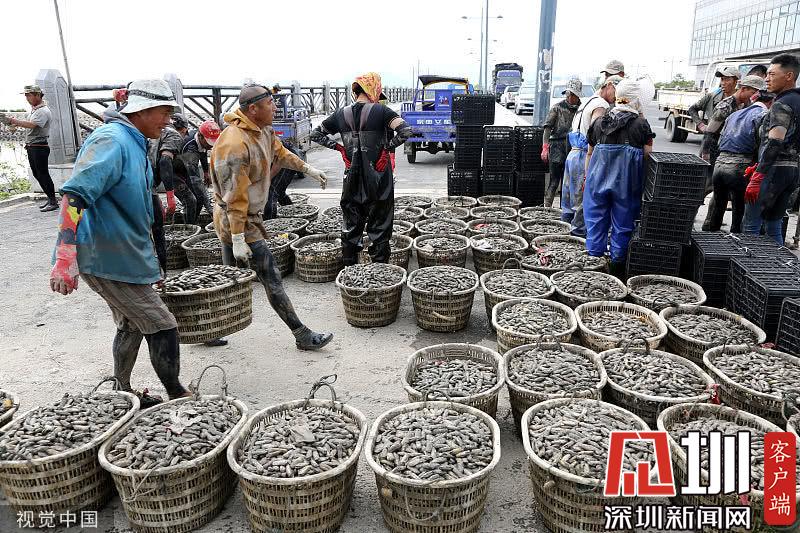 時下正是沿海地區(qū)海蟶收獲的季節(jié),在江蘇連云港海邊的灘涂上,漁民們將收獲的海蟶裝箱外運,一片忙碌。