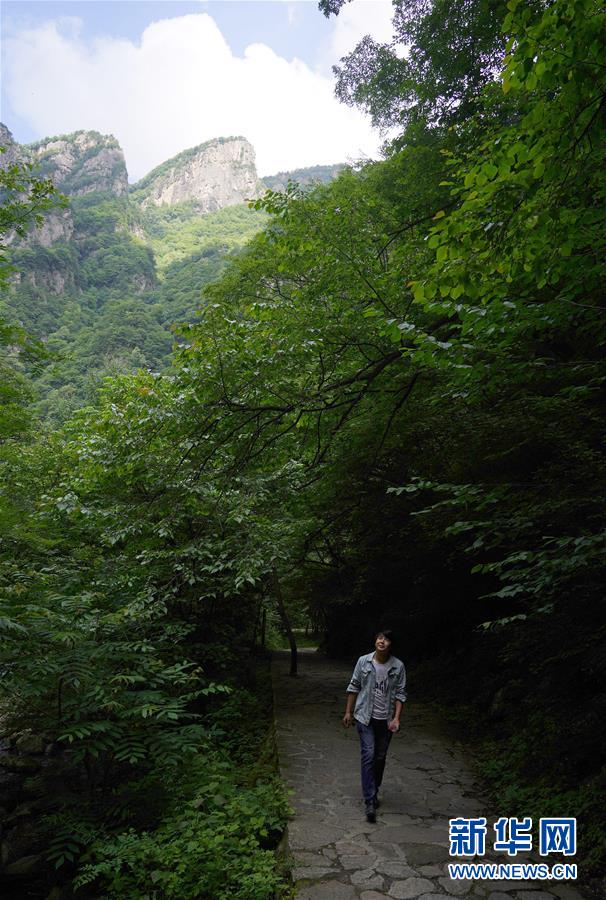 7月10日,游客在太白縣青峰峽景區(qū)游覽。 陜西太白縣青峰峽國家級森林公園位于秦嶺主峰太白山北麓,這里青山疊嶂,瀑布穿流,氣候涼爽,年平均氣溫7.6攝氏度,成為炎炎夏日中人們避暑休閑的好去處。 新華社記者 邵瑞 攝
