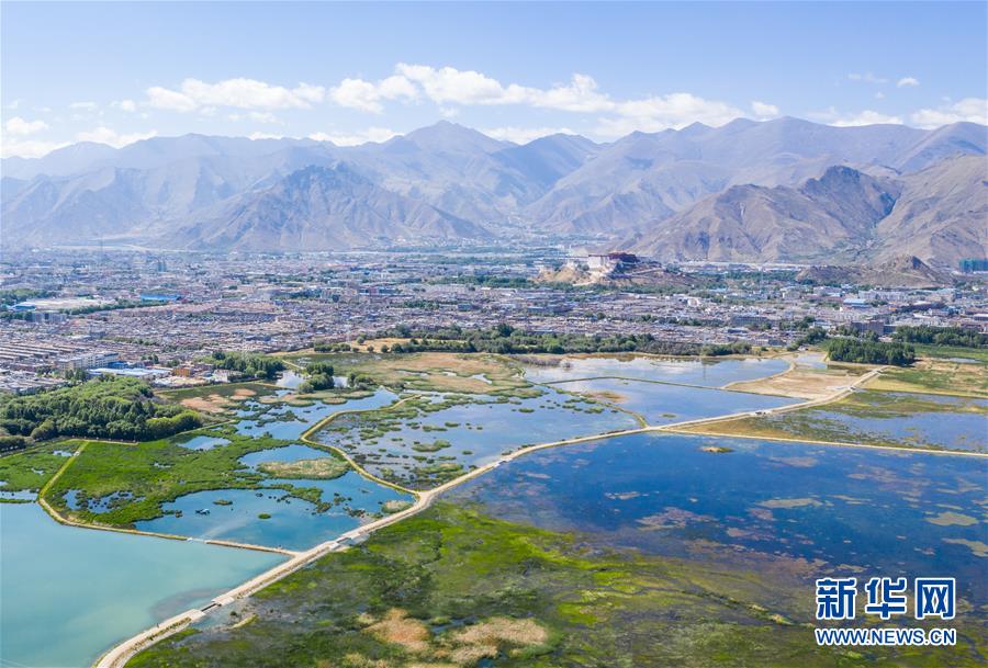 被譽為“拉薩之肺”的拉魯濕地(6月5日無人機(jī)拍攝)。