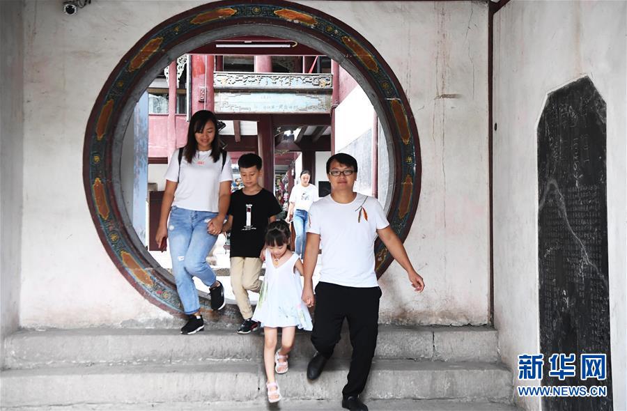 游客在張飛廟游覽(7月31日攝)。云陽縣城搬遷時(shí),原在老城對(duì)岸的張飛廟,也一磚一瓦地搬遷到了與云陽新縣城一江之隔的新址。