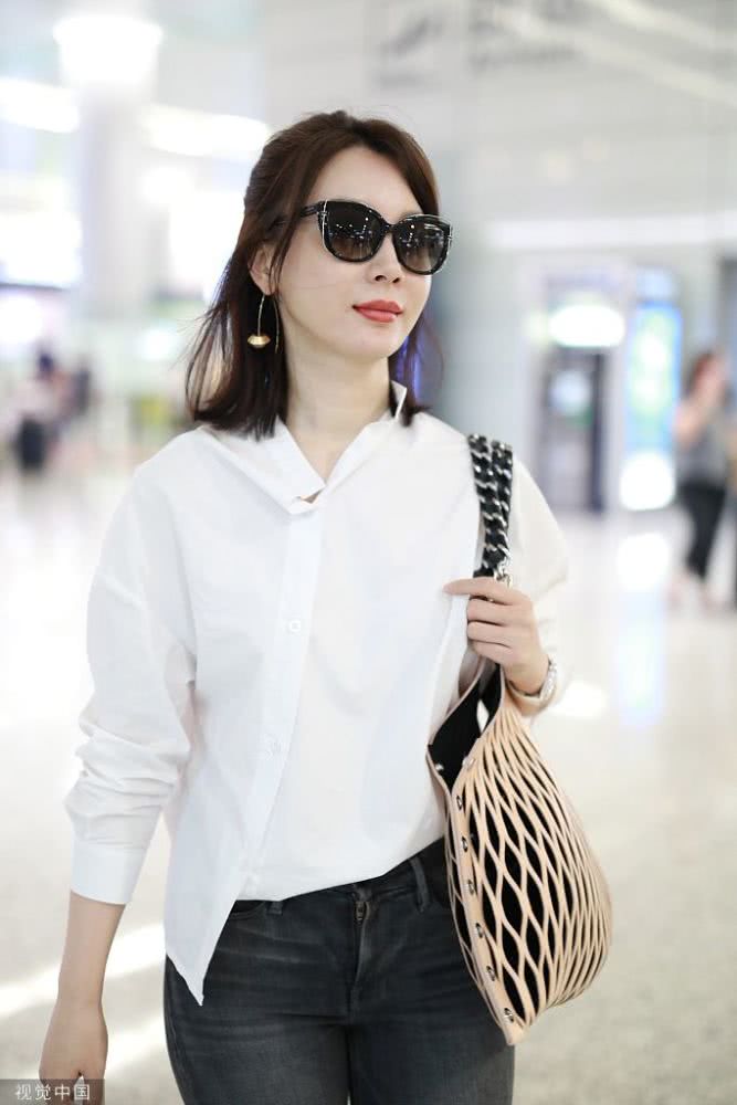 陳數(shù)穿白襯衫知性淺笑甜美迷人 架黑超拎漁網(wǎng)紋展職場女性魅力