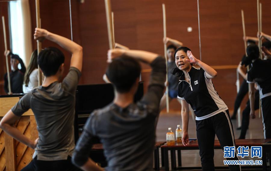 7月9日,遼寧芭蕾舞團團長曲滋嬌在指導(dǎo)演員進行芭蕾舞劇《花木蘭》的排練。新華社記者 潘昱龍 攝
