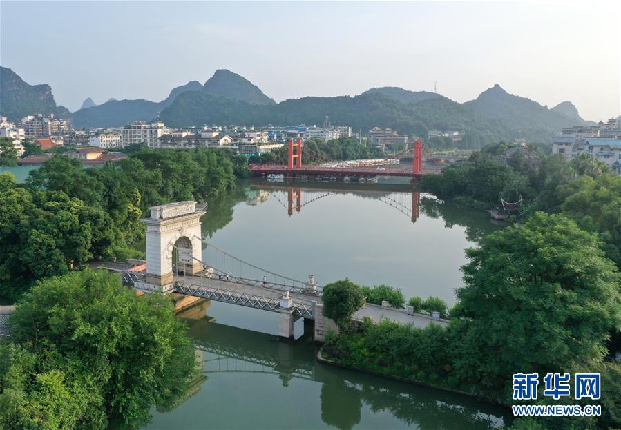 桂林市榕湖上的橋梁(7月1日無人機拍攝)。 夏日時節(jié),廣西桂林市區(qū)內(nèi)的榕湖、杉湖、桂湖、木龍湖等地綠樹成蔭、景色迷人。 新華社記者陸波岸攝