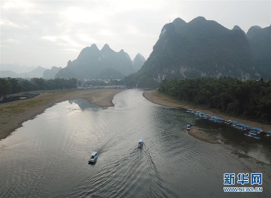 這是廣西桂林市陽朔縣興坪鎮(zhèn)漓江風光(10月18日無人機拍攝)。 新華社記者 周華 攝