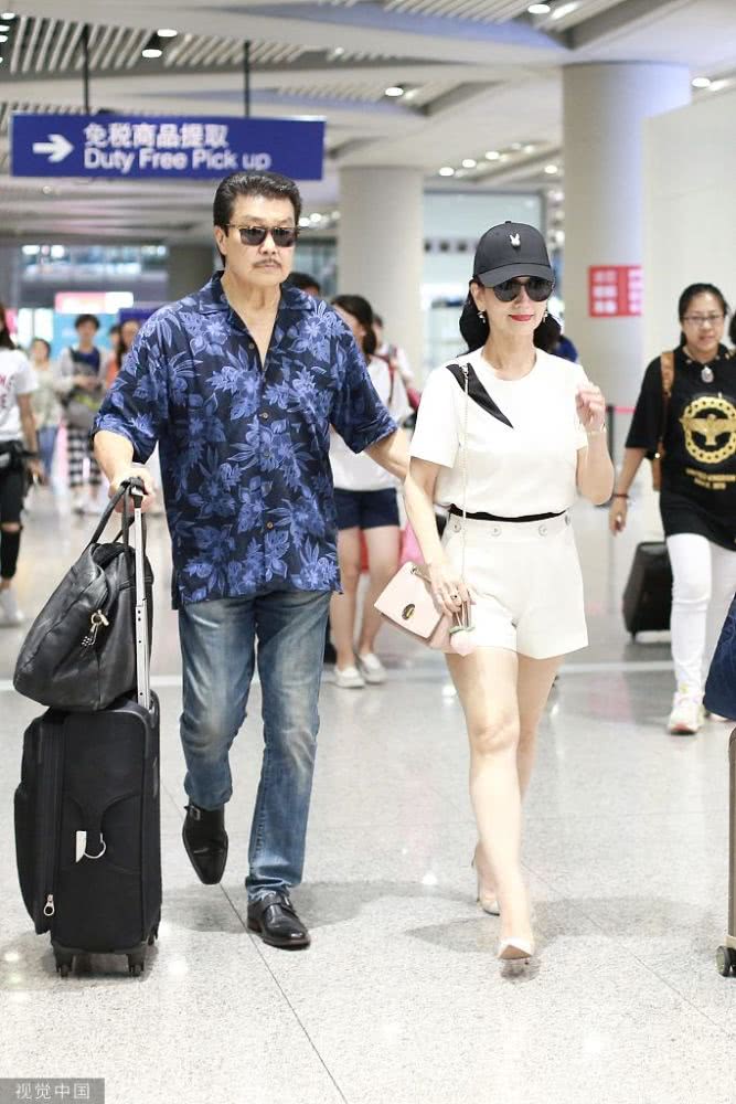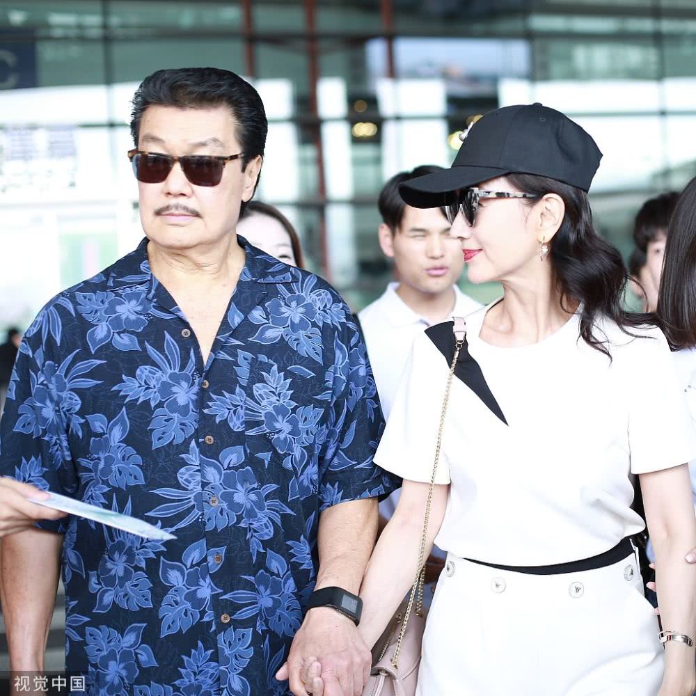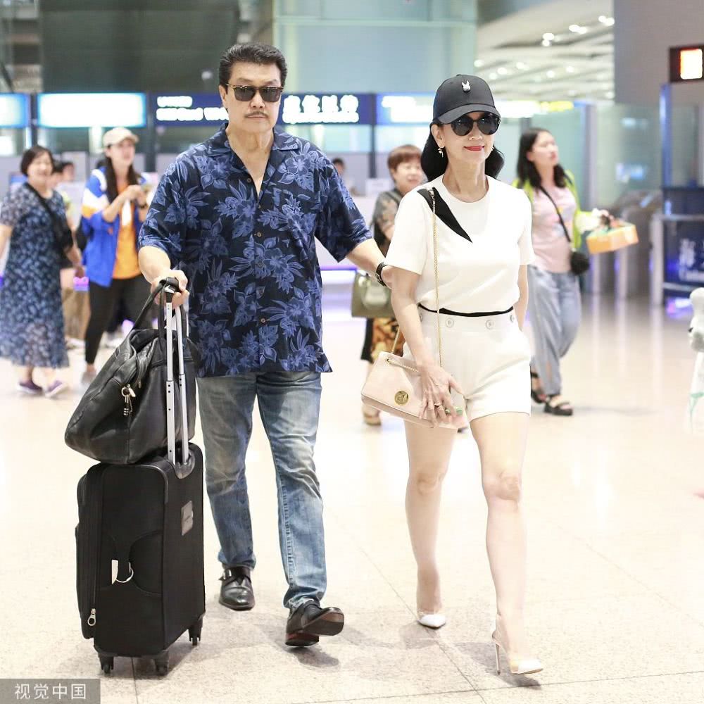 2019年8月10日,北京,趙雅芝與老公黃錦燊現(xiàn)身機(jī)場。