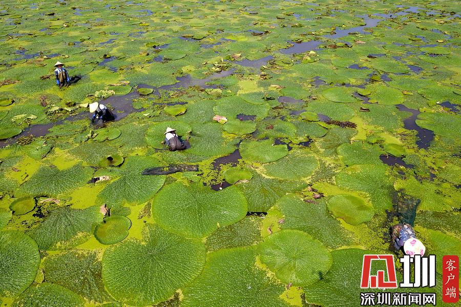 罕見的壯觀場面!萬余畝芡實迎來收獲季