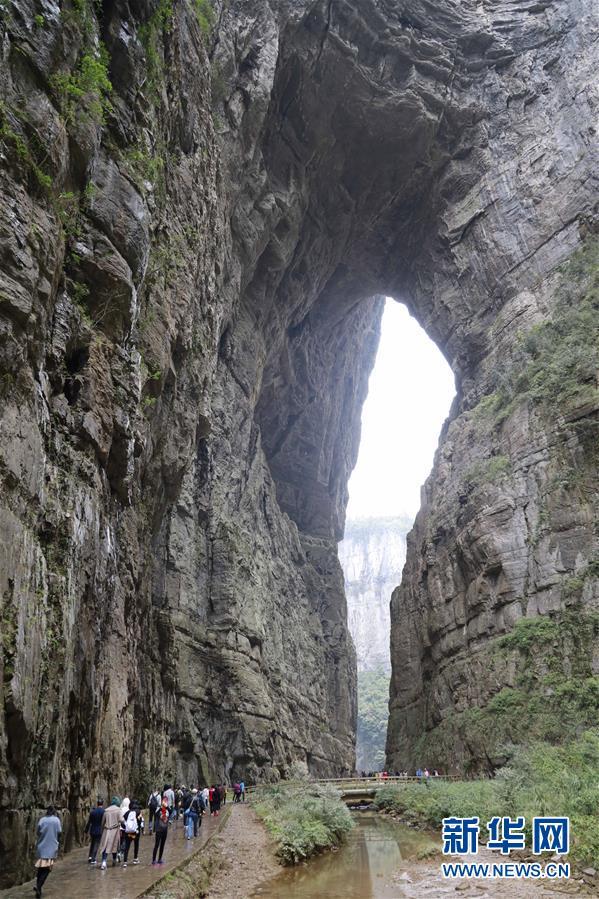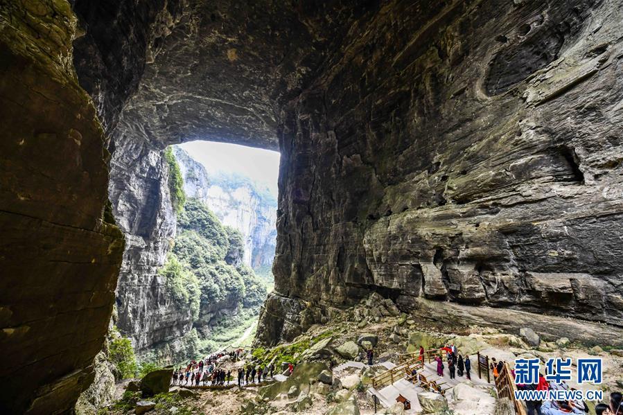 游客在天生三橋景區(qū)游覽(3月27日攝)。 隨著天氣轉暖,重慶武隆天生三橋景區(qū)風景如畫,氣勢磅礴的天生石橋和綠意盎然的山林相映成趣,吸引眾多游客前來踏春賞景。 新華社記者劉潺攝