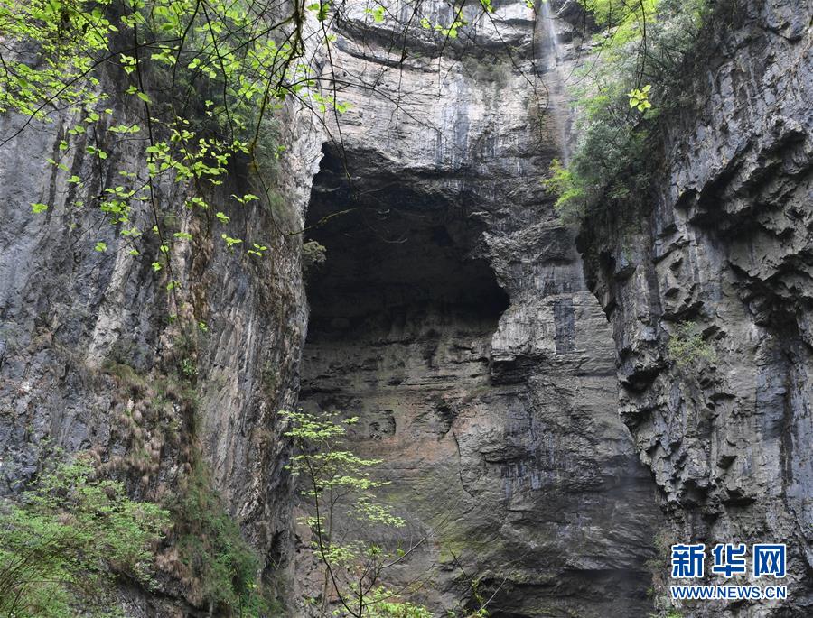 地洞河天坑的巖壁。位于陜西省漢中市寧強縣的地洞河天坑,是禪家?guī)r天坑群中規(guī)模最大的一處天坑,坑內(nèi)分布有石鐘乳、石筍,具有極高的地質(zhì)研究價值。新華社 張博文 攝
