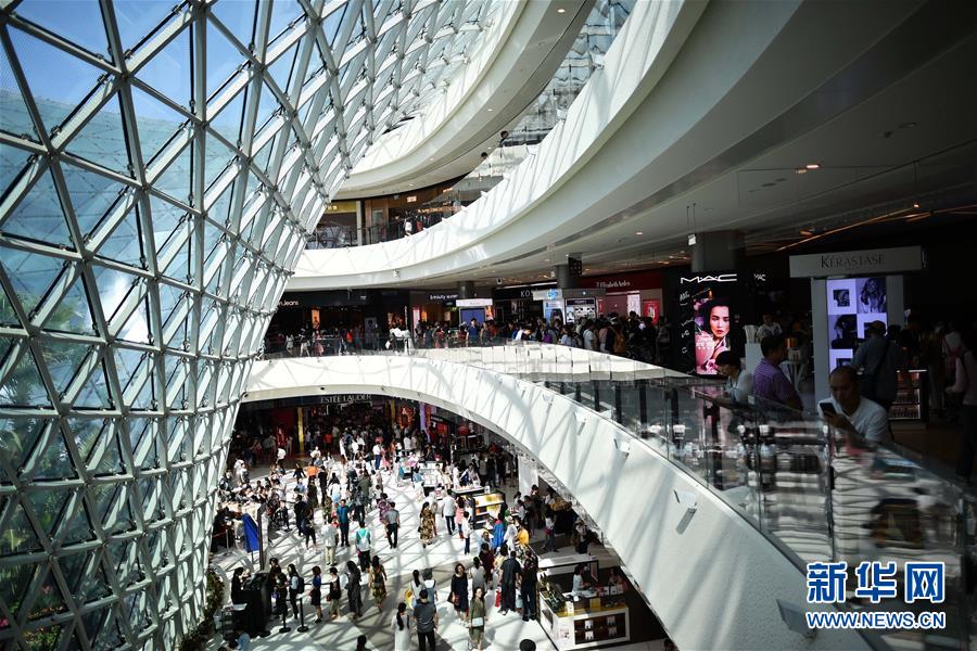 顧客在三亞海棠灣免稅店內(nèi)游覽、購物(2018年2月18日攝)。新華社記者郭程攝