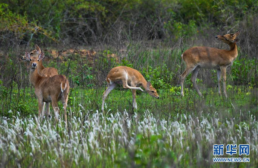 坡鹿在海南大田國家級自然保護(hù)區(qū)內(nèi)休息(2018年4月29日攝)。新華社記者 楊冠宇 攝