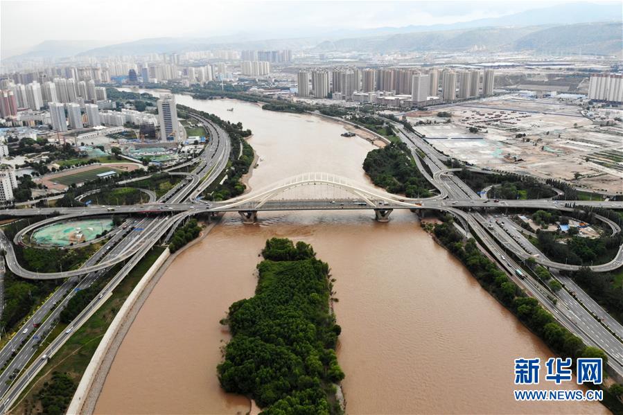 黃河蘭州段的深安黃河大橋(6月11日無人機(jī)拍攝)。新華社記者 范培珅 攝