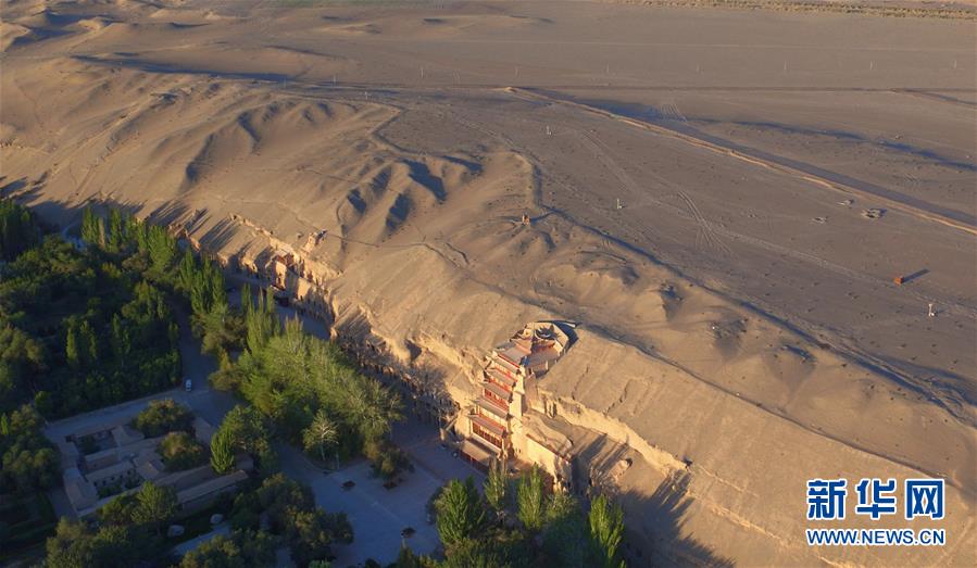 世界文化遺產(chǎn)莫高窟(2016年9月7日無人機(jī)拍攝)。新華社記者 陳斌 攝