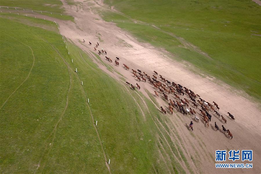 山丹馬場上的馬群(7月17日無人機拍攝)。新華社記者 范培珅 攝
