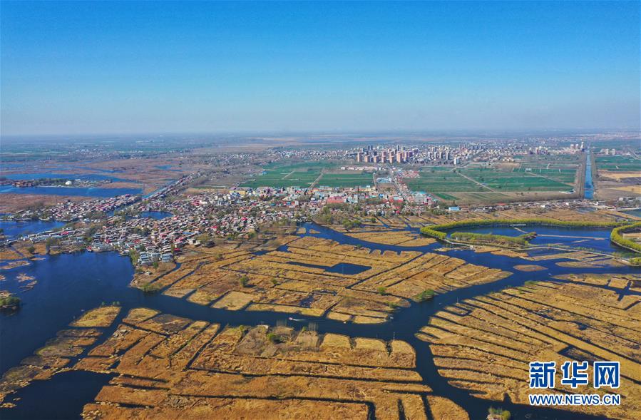 4月1日無人機(jī)拍攝的雄安新區(qū)白洋淀。