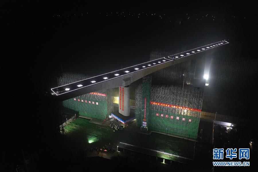 8月27日凌晨,施工人員在進(jìn)行橋梁轉(zhuǎn)體施工。 新華社記者 楊世堯 攝