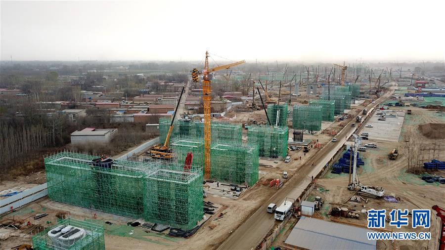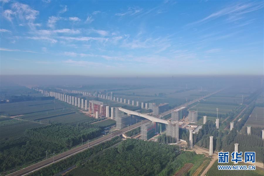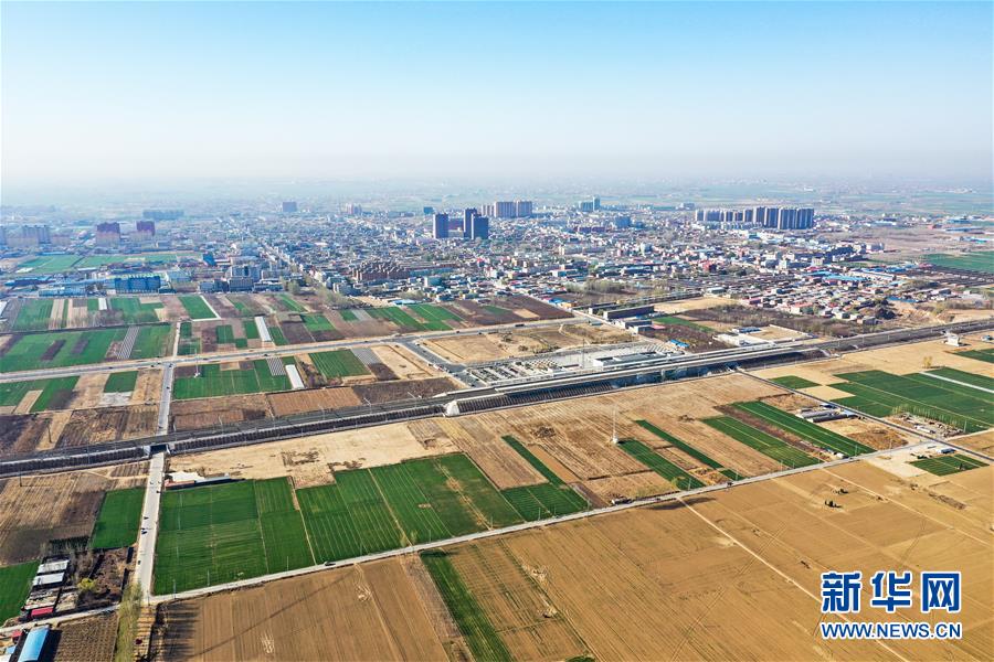 這是京雄城際鐵路施工現(xiàn)場(3月21日無人機(jī)拍攝)。新華社記者牟宇攝