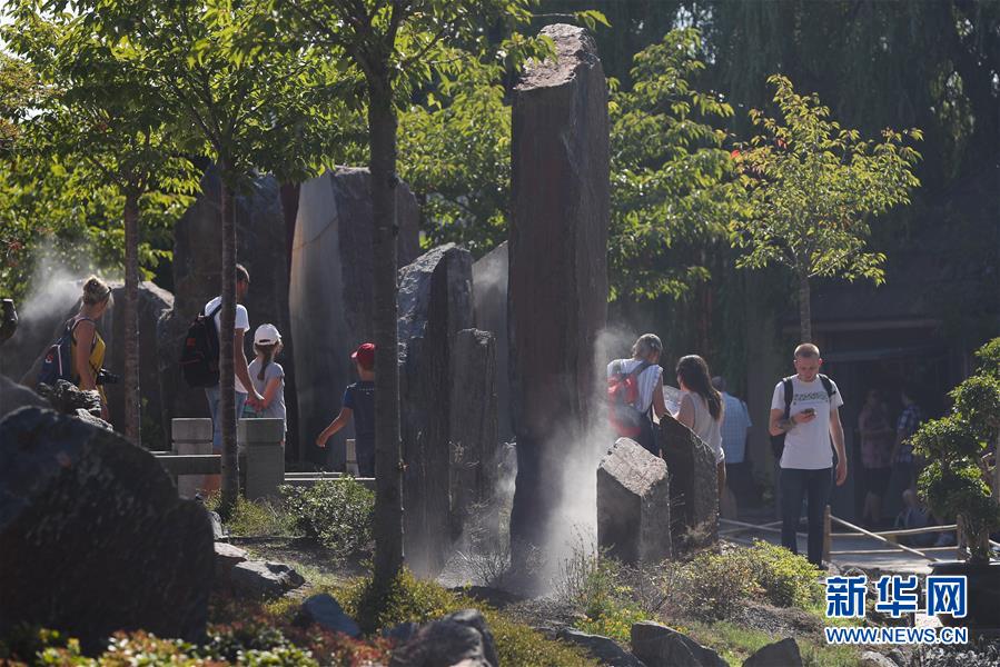 8月24日,在比利時(shí)布呂熱萊特市,游客參觀天堂動(dòng)物園的“中國園”。新華社記者鄭煥松攝