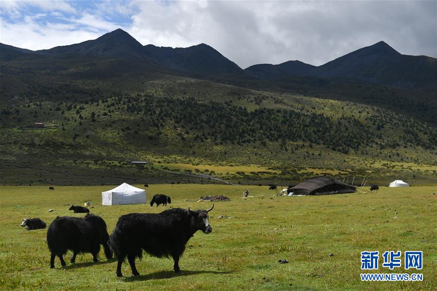這是9月8日在四川省康定市呷巴鄉(xiāng)俄達(dá)門(mén)巴村附近拍攝的一處藏族牧民的牦牛牧場(chǎng)。新華社記者孫瑞博攝