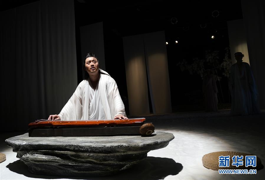 9月16日,演員在話劇《廣陵絕》中表演。 當日,話劇《廣陵絕》在北京人藝實驗劇場上演。該劇由中國戲劇家協會副主席王曉鷹任藝術指導,龐貝編劇,通過魏晉名士嵇康與戰(zhàn)國刺客聶政的“同構”拼貼,旨在展現中國傳統(tǒng)“道義”精神,反思生命與自由沖突,探討人的主體意識覺醒。 新華社記者 金良快 攝