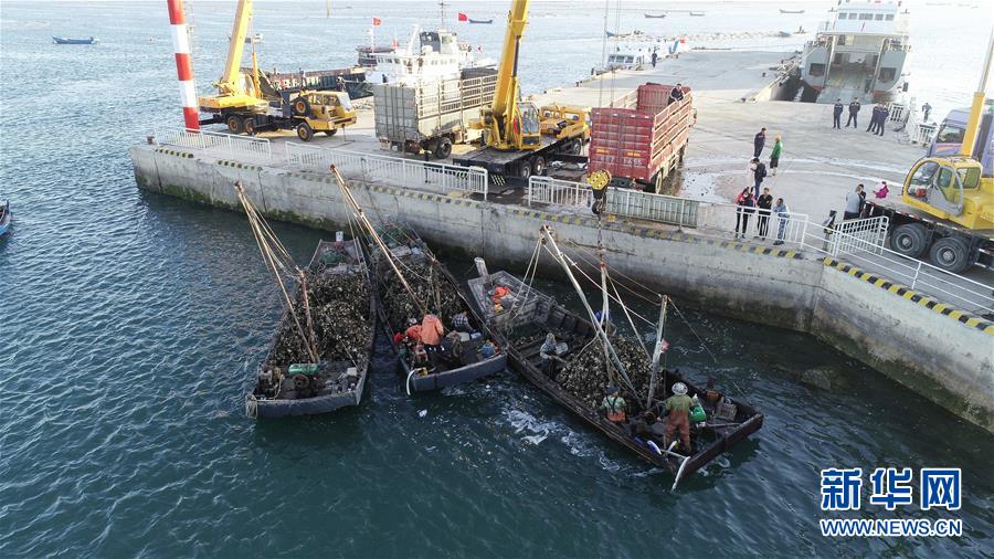 當(dāng)日,在遼寧省大連市長(zhǎng)??h廣鹿島海域,漁民忙碌地打撈牡蠣,呈現(xiàn)一片繁忙的豐收景象。近年來(lái),大連市持續(xù)加強(qiáng)海洋牧場(chǎng)建設(shè),目前已累計(jì)建設(shè)海洋牧場(chǎng)約36萬(wàn)公頃,投放各類魚礁約1578萬(wàn)平方米,建立國(guó)家級(jí)海洋牧場(chǎng)示范區(qū)14處。