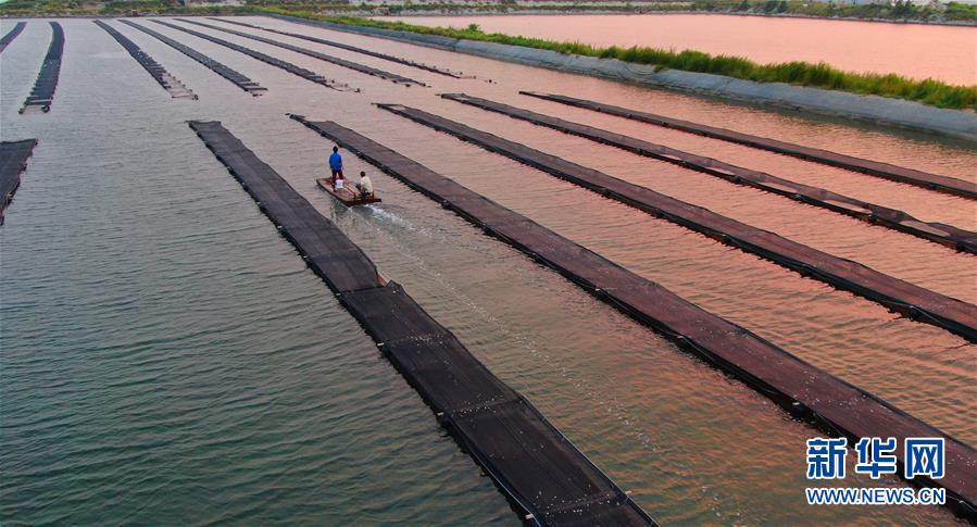 郭旗和愛人坐船查看海參養(yǎng)殖情況(9月5日無人機(jī)拍攝)。 新華社記者 楊青 攝
