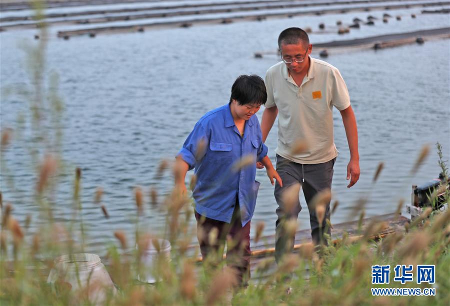 郭旗和愛(ài)人郝赫在查看完海參后上岸(9月5日攝)。 新華社記者 楊青 攝