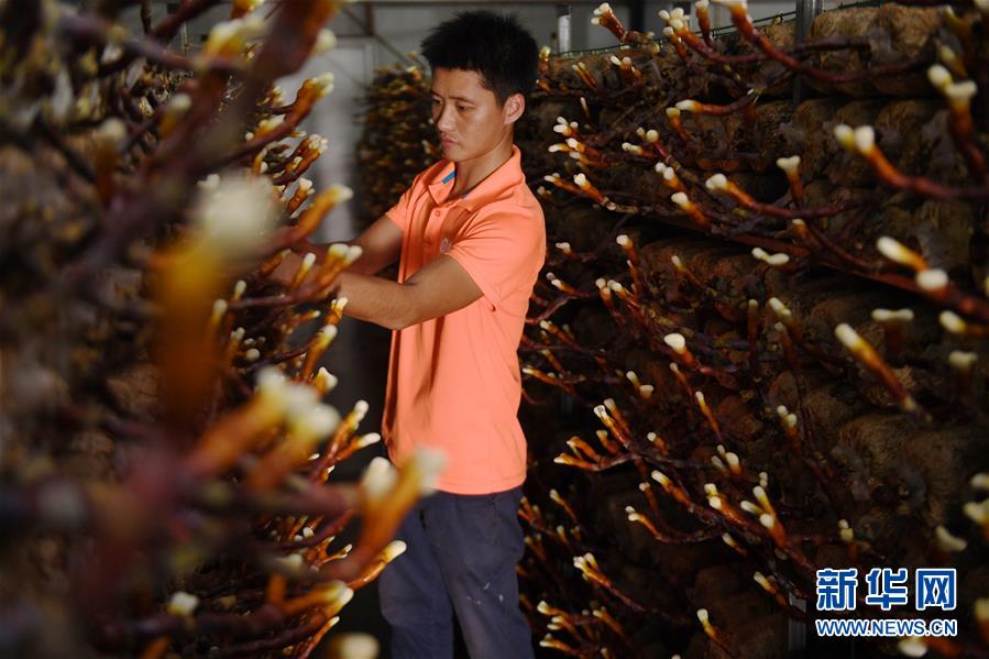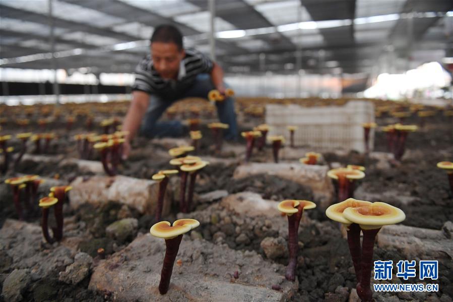 9月25日,在福建省南平市浦城縣蓮塘鎮(zhèn)山橋村,技術(shù)員在采摘靈芝。 近年來(lái),福建省南平市浦城縣利用當(dāng)?shù)鬲?dú)特的生態(tài)資源,依托特色靈芝產(chǎn)業(yè),發(fā)揮龍頭企業(yè)示范作用,通過(guò)公司+基地+貧困戶(hù)入股等方式,輻射帶動(dòng)17個(gè)鄉(xiāng)鎮(zhèn)約300戶(hù)貧困戶(hù)增收。 新華社記者 宋為偉 攝