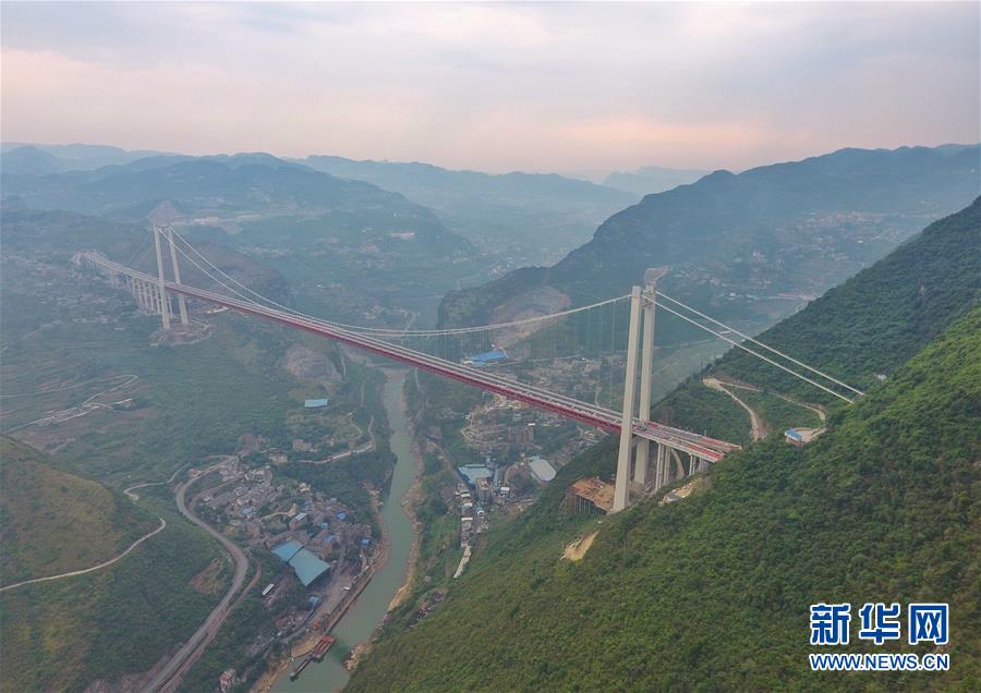赤水河紅軍大橋全長(zhǎng)2009米,主跨1200米,主塔高243.5米,在全國(guó)山區(qū)同類型鋼桁梁懸索橋梁中排名前列,由四川省鐵投集團(tuán)投資、四川路橋集團(tuán)承建,于2017年上半年開工。 新華社記者劉坤攝