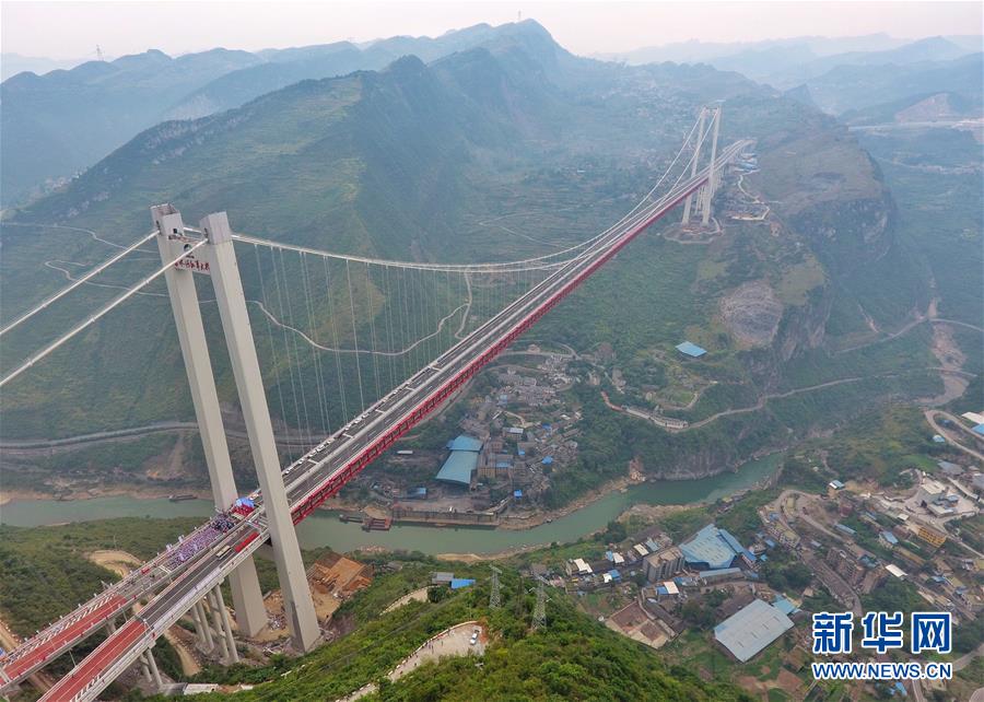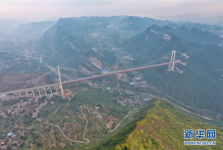 赤水河紅軍大橋全長2009米,主跨1200米,主塔高243.5米,在全國山區(qū)同類型鋼桁梁懸索橋梁中排名前列,由四川省鐵投集團(tuán)投資、四川路橋集團(tuán)承建,于2017年上半年開工。 新華社記者劉坤攝