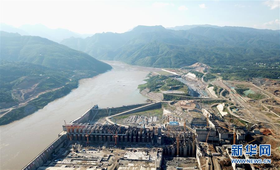這是用無人機拍攝的建設(shè)中的烏東德水電站全景(5月30日攝)。新華社記者陳曄華攝