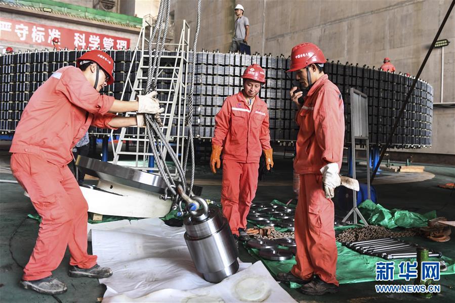 5月30日,工人在烏東德水電站左岸地下電站主廠房內(nèi)工作。新華社記者陳曄華攝
