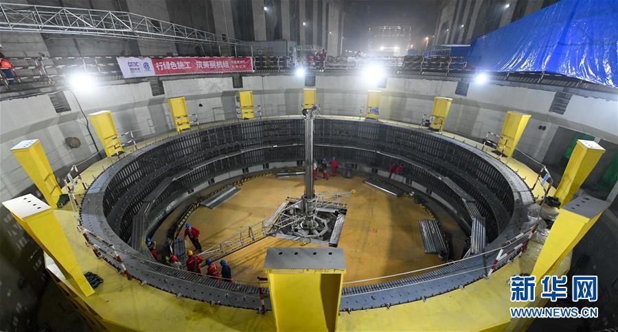 烏東德水電站左岸地下電站主廠房內(nèi)的6號機組正在建設(shè)中(5月30日攝)。新華社記者陳曄華攝