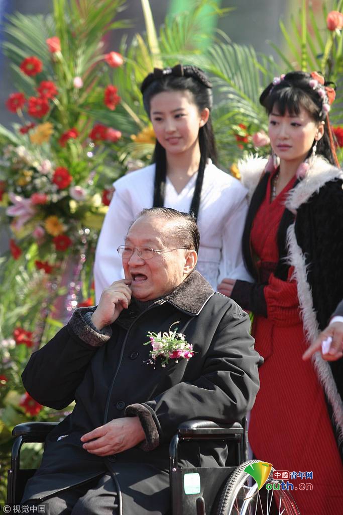 2005年1月10日,《神雕俠侶》劇組正式在第三個(gè)拍攝地—寧波象山開機(jī)。金庸與劉亦菲在一起。