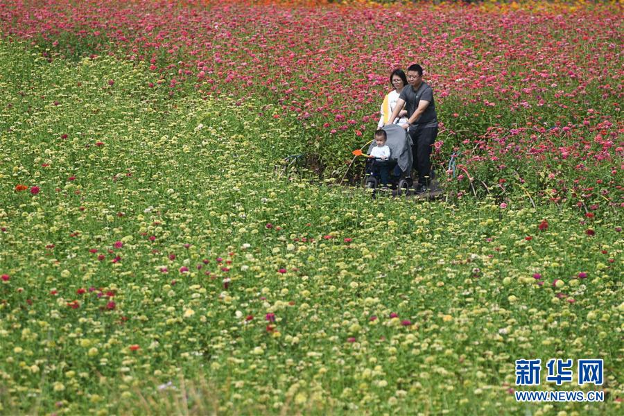 10月9日,小朋友和家長在四季花海城市公園游玩。 秋日時(shí)節(jié),位于安徽省合肥市的四季花海城市公園花香四溢,色彩繽紛,成為游客和市民休閑游玩的好去處。 新華社記者 張端 攝