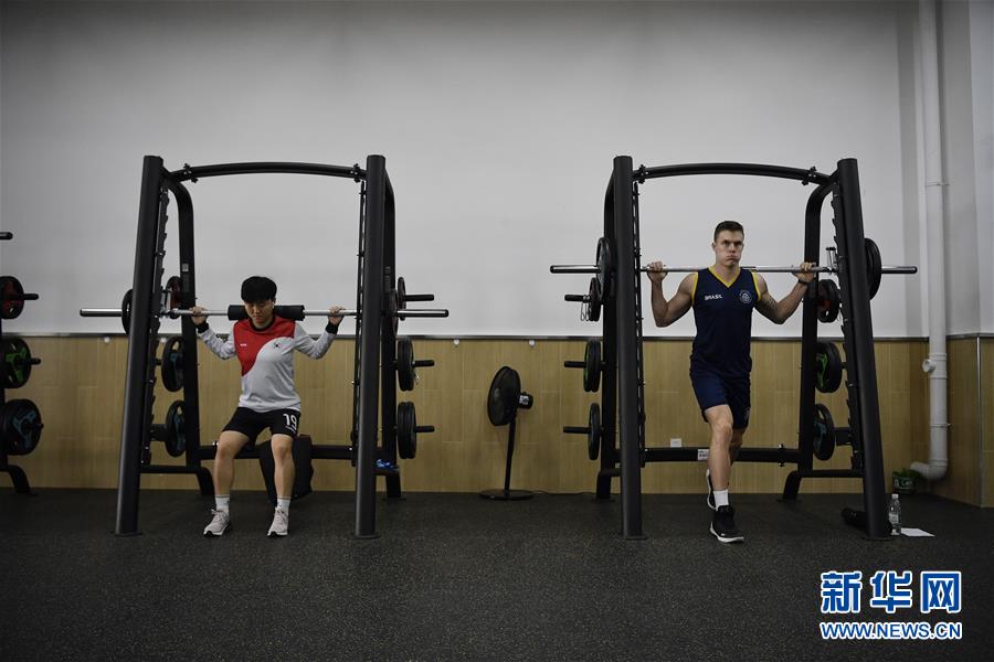10月16日,運(yùn)動(dòng)員在軍運(yùn)村內(nèi)的健身中心鍛煉。新華社記者王鵬攝