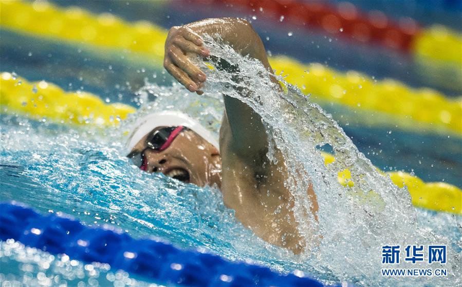 10月20日,中國隊選手牛鈺捷在比賽中入水。新華社記者肖藝九攝