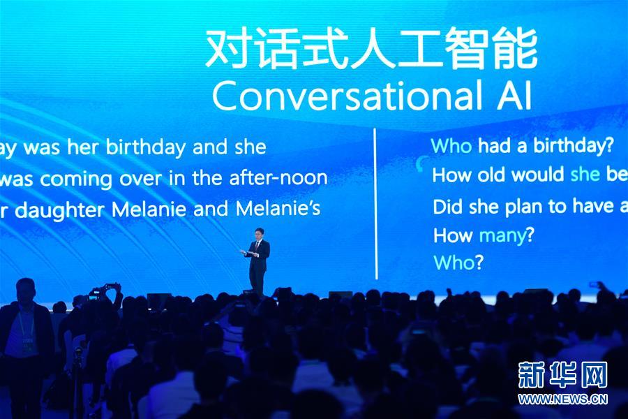 10月20日,微軟公司代表在介紹“統(tǒng)一自然語言預(yù)訓(xùn)練模型與機(jī)器閱讀理解”。新華社記者 黃宗治 攝