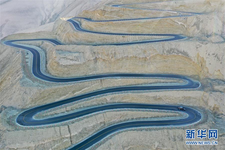 這是10月20日無人機拍攝的新疆塔什庫爾干塔吉克自治縣吾格亞提盤山公路。在中國西陲的新疆帕米爾高原,塔什庫爾干塔吉克自治縣縣城到瓦恰鄉(xiāng)之間有條蜿蜒的盤山公路,海拔超4200米,全長36公里,最大落差近1000米,被當?shù)厝朔Q為“高原天路”。盤山公路彎曲盤旋的走勢與周邊雄渾壯麗的風光,共同構(gòu)成一幅壯美畫卷。這條公路名為吾格亞提盤山公路,2019年7月投入使用,便利了山區(qū)農(nóng)牧民的出行。新華社記者丁磊攝